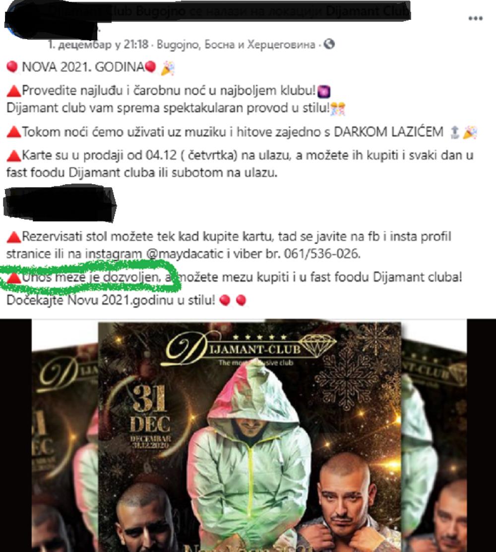 Darko Lazić ugovorio je nastup za doček nove 2021. godine u Bugojnu, u Bosni i Hercegovini, na kojem posetioci imaju mogućnost da sa sobom ponesu meze.