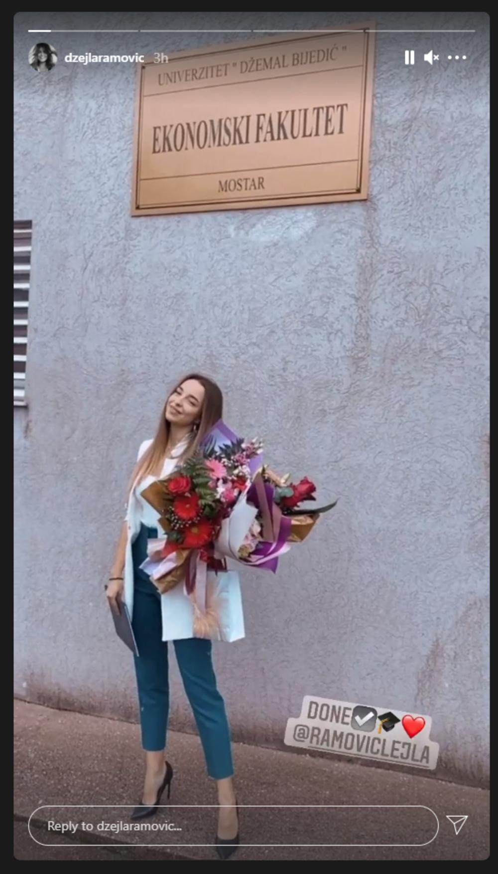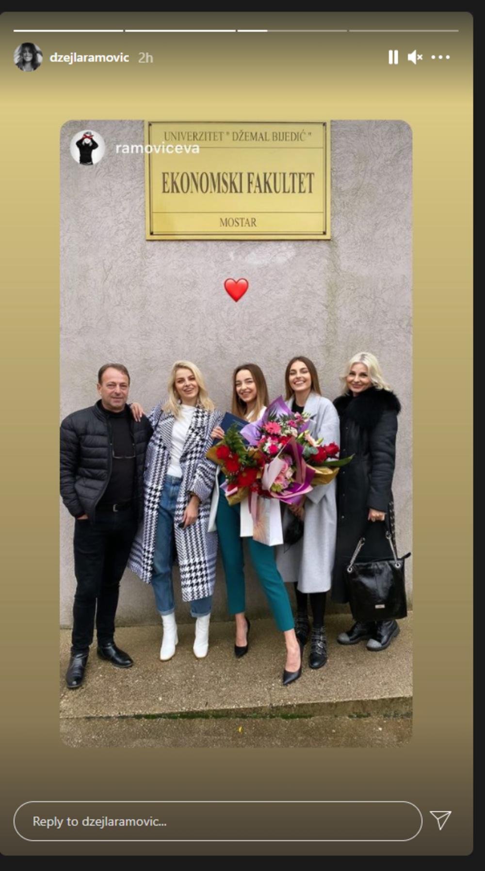 Lejla je diplomirala na Ekonomskom fakultetu u Mostaru ispred kog su nastale njihove porodične fotografije. Džejla nije htela da krije koliko je ponosna na sestru, te je podelila nekoliko slika na Insta storiju.