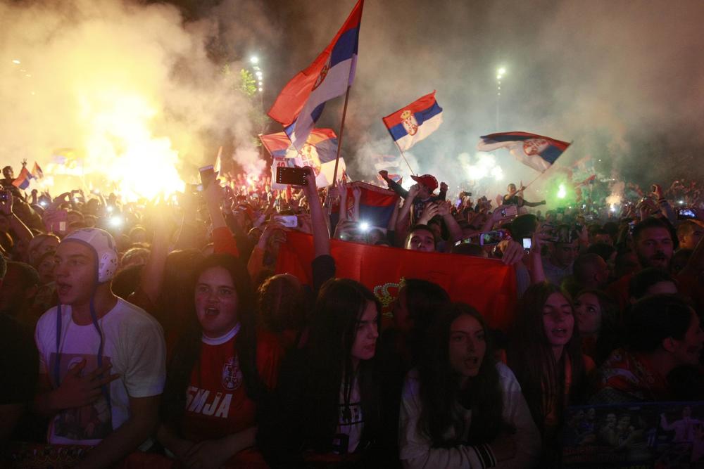 Milica je sinoć na dočeku sa svojim drugaricama zapevala Marš na Drinu, a to su prihvatili svi okupljeni navijači koji su u transu pevali sa njima, dok su se na pojedinim mestima upalile i baklje.