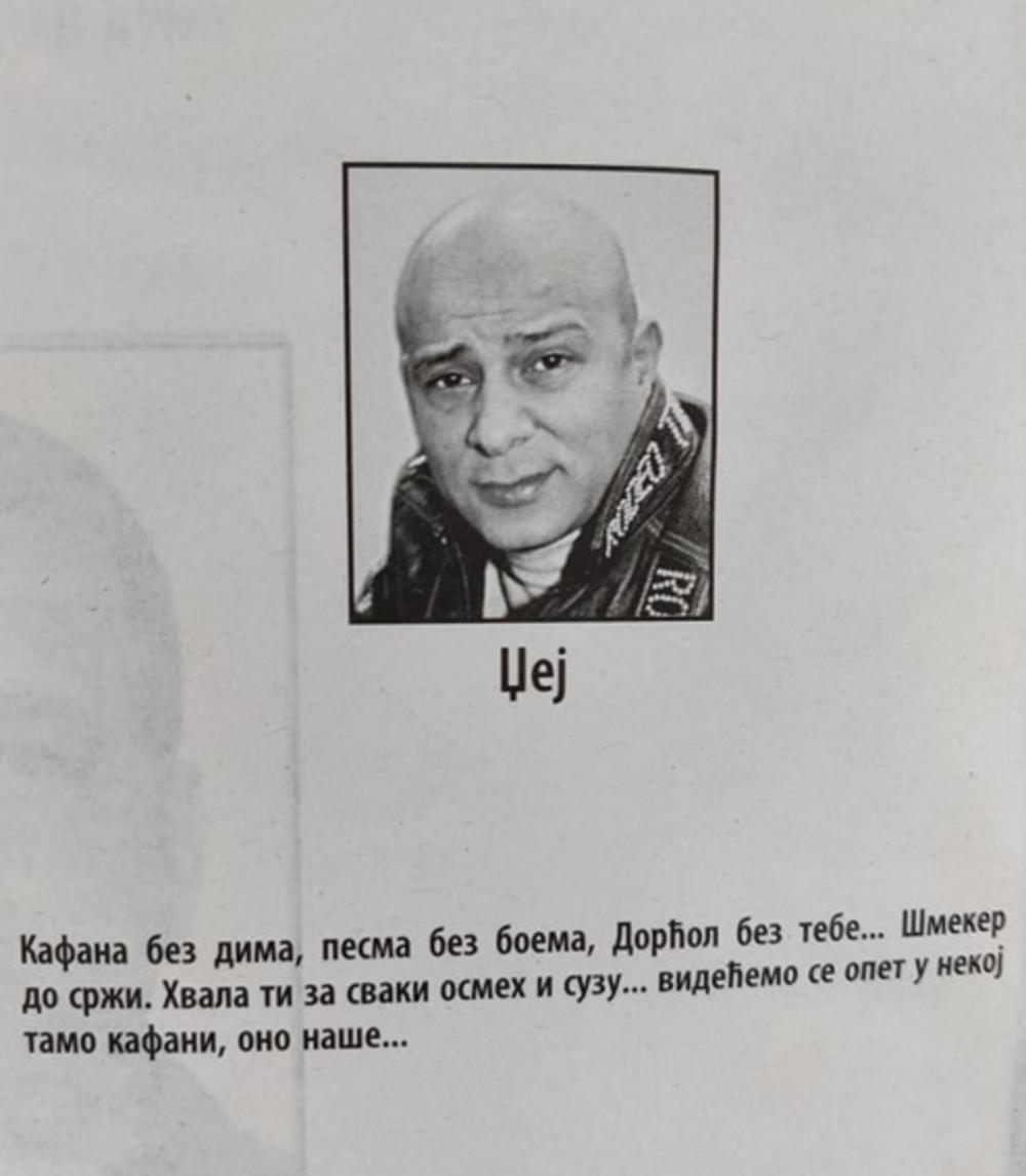 “Kafana bez dima, pesma bez boema, Dorćol bez tebe. Šmeker do srži. Hvala ti za svaki osmeh i suzu. Videćemo se opet u nekoj tamo kafani, ono naše”, piše u čitulji sa potpisom “Rade Krstić i tvoji dorćolci”.