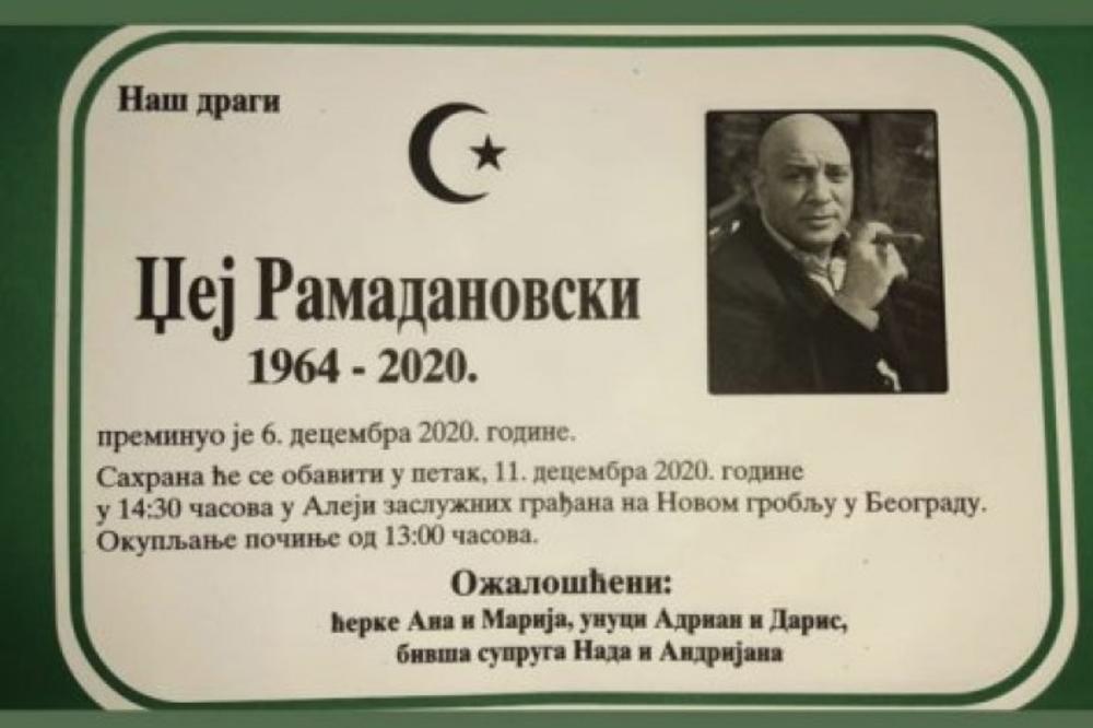 Pevač Džej Ramadanovski preminuo je u nedelju 6. decembra, a narednog petka biće sahranjen u Aleji zaslužnih građana.