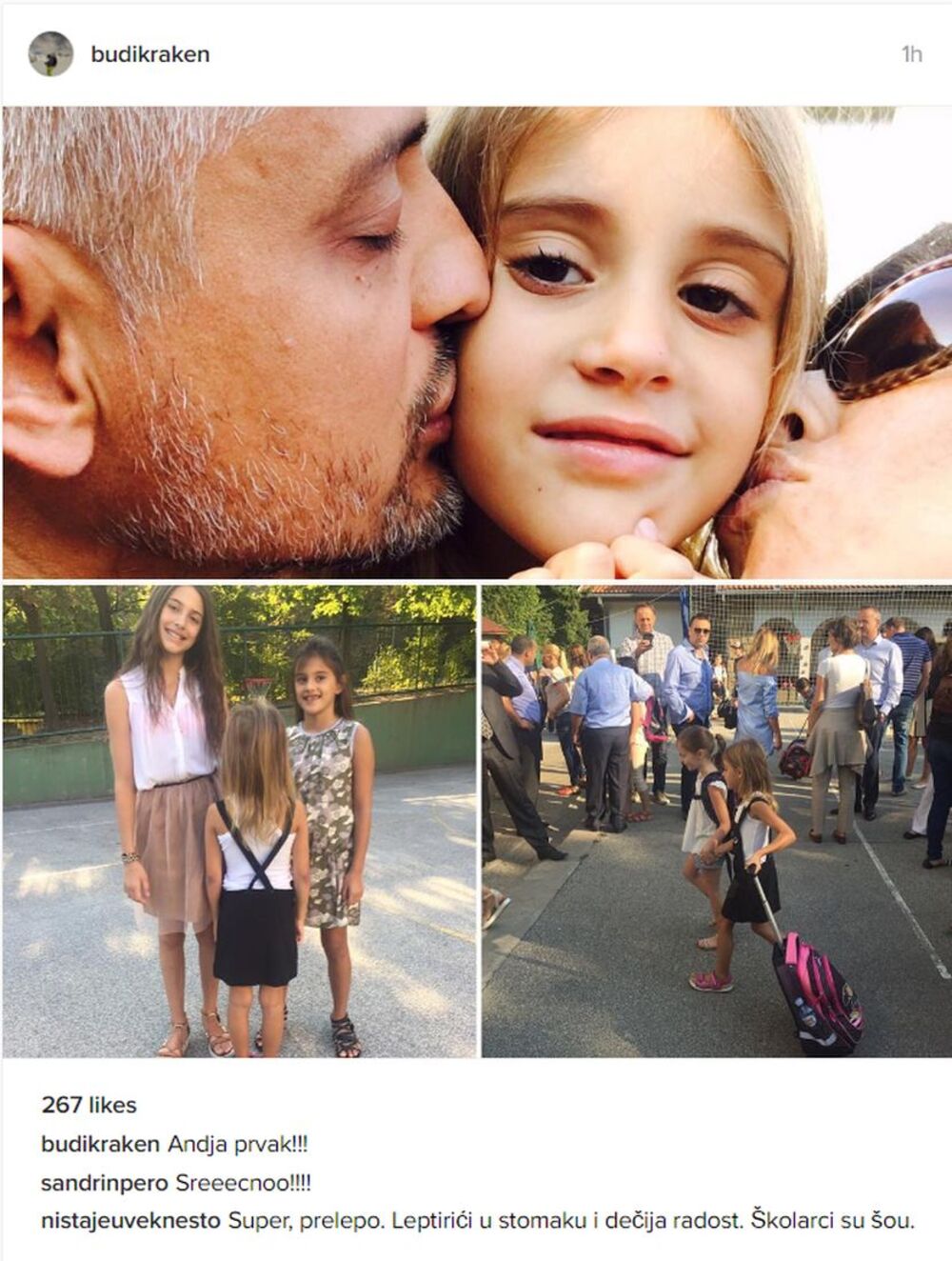 - Anđa prvak!!! - napisao je ponosni tata Čeda ispod fotke koju je okačio na svoj profil na Instagramu i verujemo teška srca pustio Anđu u đački svet i potencijalne političke vode.