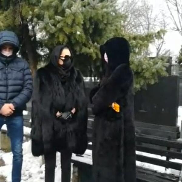 Ceca je došla u crnoj bundi, kao i njena ćerka Anastasija, a sve troje su nosili zaštitnu masku kako. Sveštenik je održao pomen.