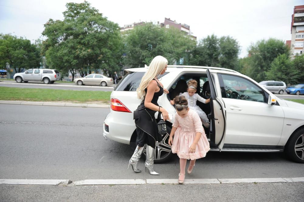 Pevačica je stigla sama sa Atinom i Nikom, a malo kasnije pridružio se i tata Duško Tošić.