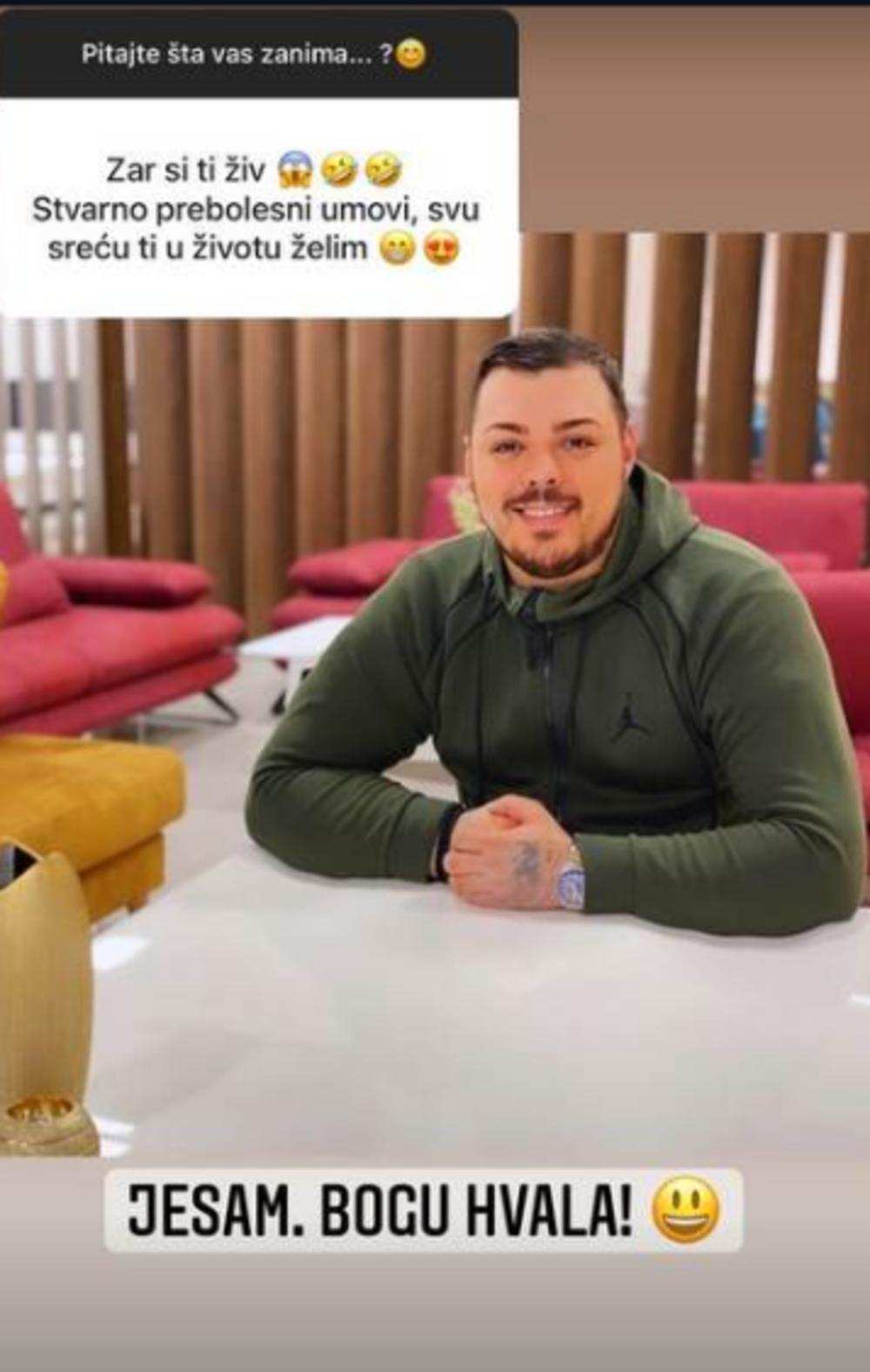 "Mojih 100 života. Hvala što mi javljate, da znam čisto klošari!", napisao je tada, a sada su ga pojedini pratioci ispitivali o lažnim navodima, na šta je iskreno odgovarao.
