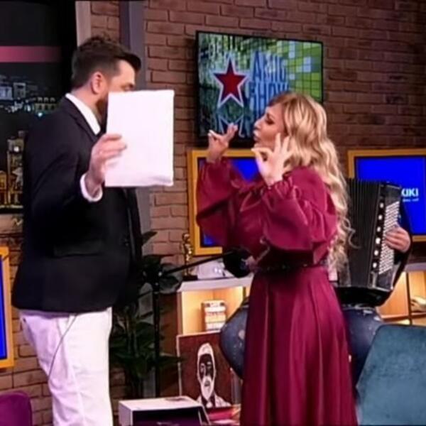 U toku emisije pevačica je zapevala svoh hit "Ah tugo, tugo" i dovela atmosferu do usijana, pa tako je sa njom zaigrao i Ognjen: