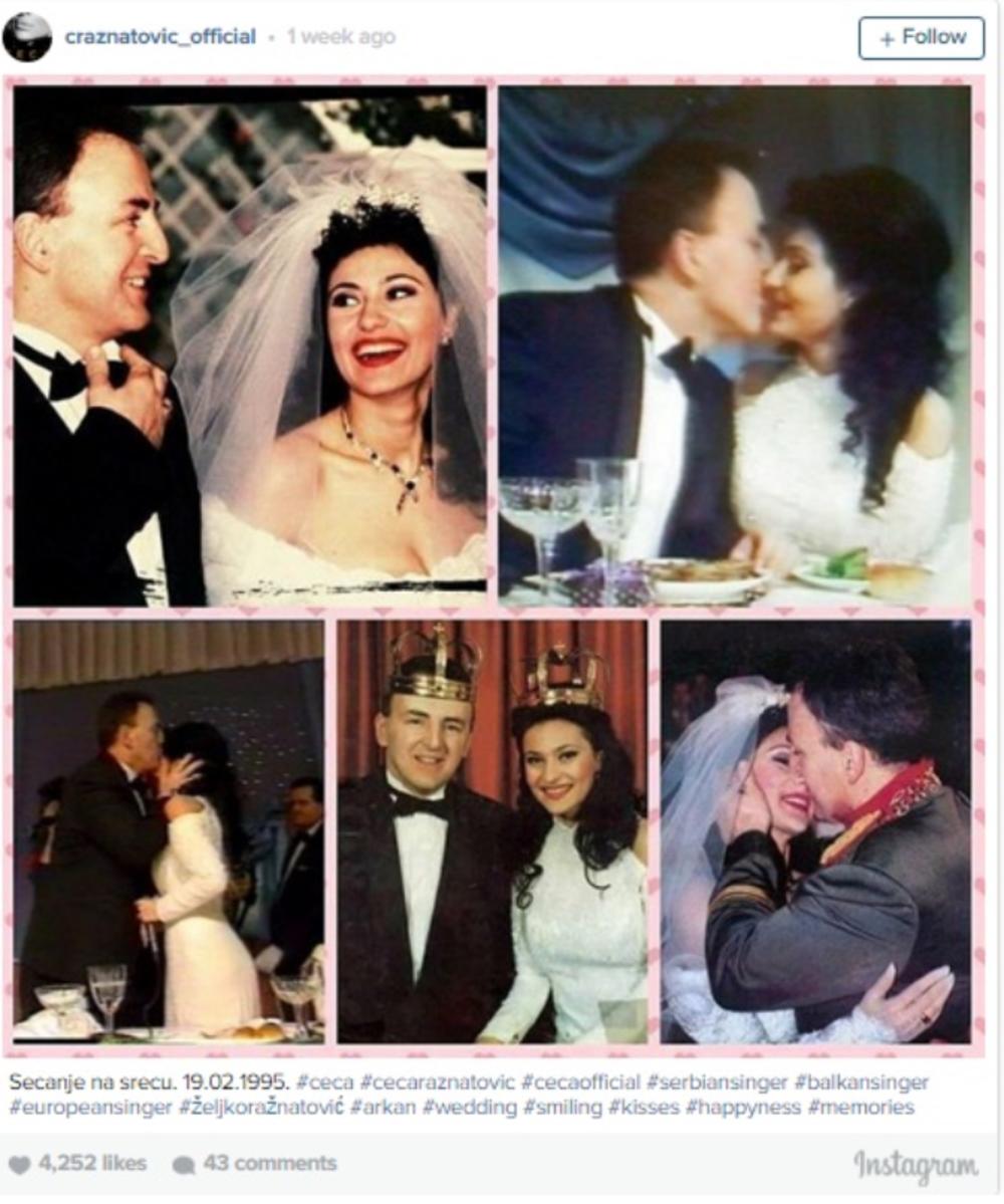 Ceca Ražnatović se 19. februara 1995. godine udala za Željka Ražnatovića Arkana.