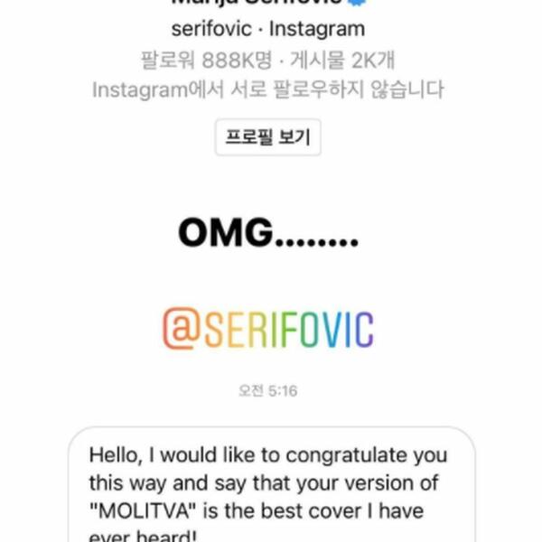 Osim toga, Šerifovićeva je jednom od pevača uputila i privatnu poruku, koju je on sa oduševljenjem i nevericom objavio na svom Insta-storiju. U poruci je Marija takođe navela da je oduševljena njihovim performansom, a mladi pevač od uzbuđenja nije znao kako da reaguje, te je napisao "O, moj Bože".