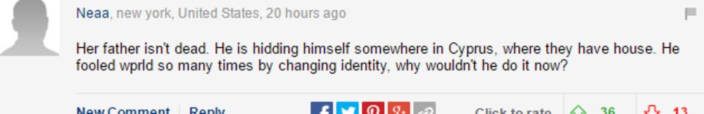 "Njen otac nije mrtav. Krije se negde na Kipru gde imaju kuću.Već je više puta prevario svet promenom identiteta,zašto ne bi i sad?"