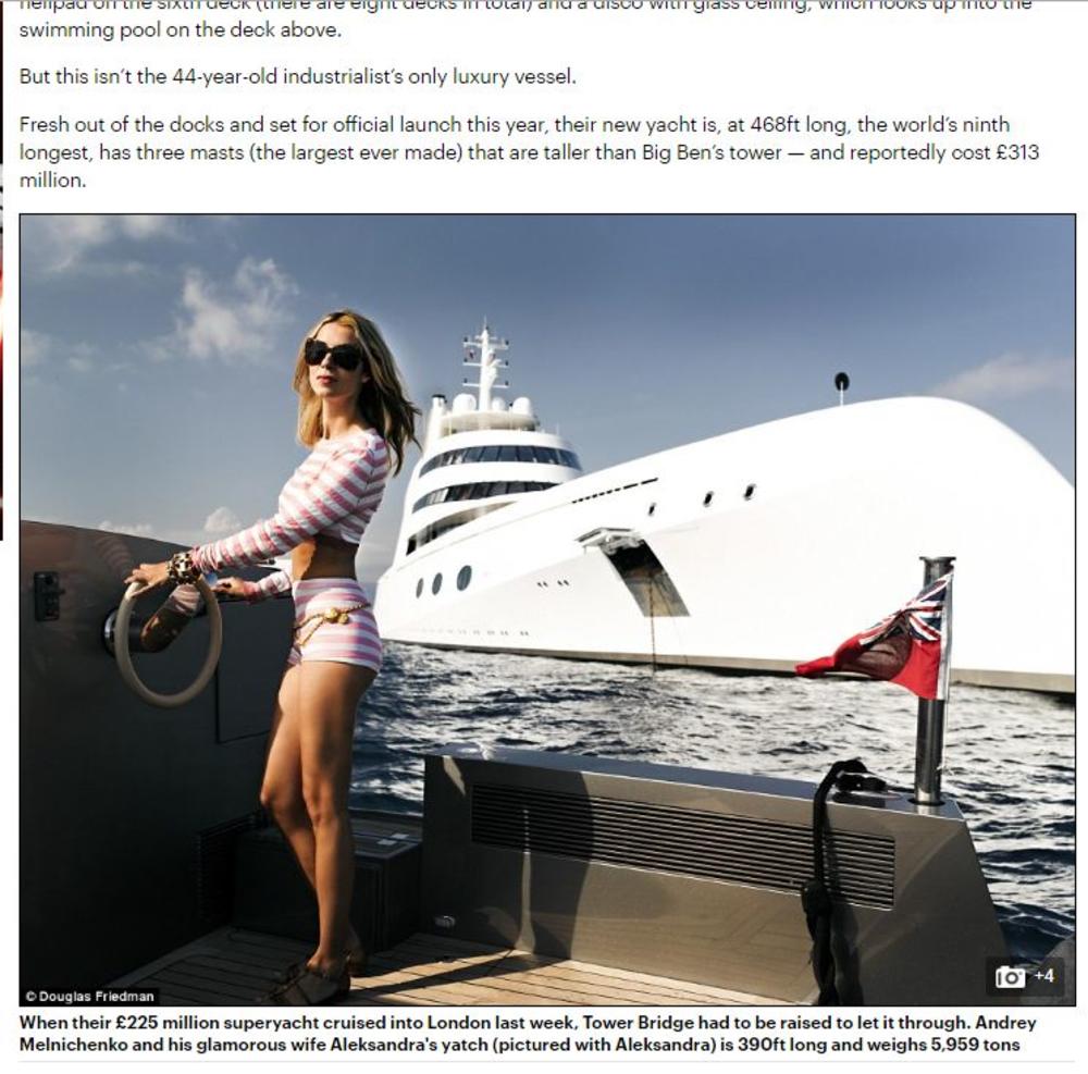 Britanski Dejli Mejl posvetio je celu jednu stranu bivšoj modelsici Aleksandri Meljničenko i njenom suprugu.