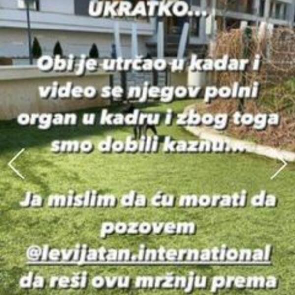 "Obi je utrčao u kadar i video se njegov polni organ u kadru i zbog toga smo dobili kaznu...", objasnio je pratiocima tražeći "pravdu za Obija".