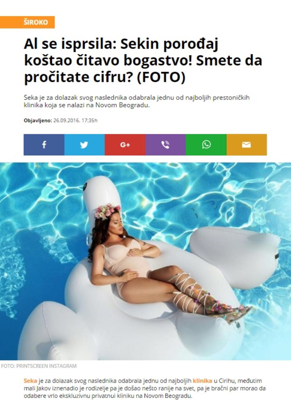 Ipak, ono što je izazvalo najviše komentara jeste saznanje određenih beogradskih medija da je Seka "pukla" čitavih 4.000 evra na porođaj.