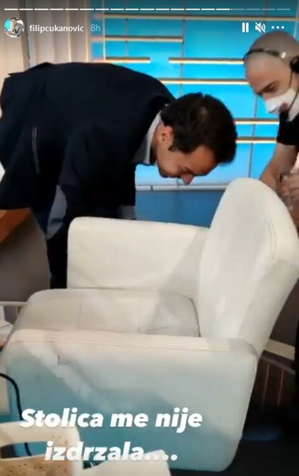 Na sve to, stolica na kojoj je sedeo Čukanović je pukla, te je voditelj pao sa nje, što je poslužilo za novu turu smeha.