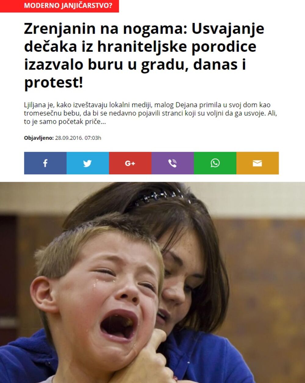 Nakon što je Zrenjanin potresla vest da će dete iz hraniteljske porodice usvojiti stranci, iako je hraniteljka i voljna i sposobna da se brine o malom Dejanu, građani su podigli pravu malu bunu.