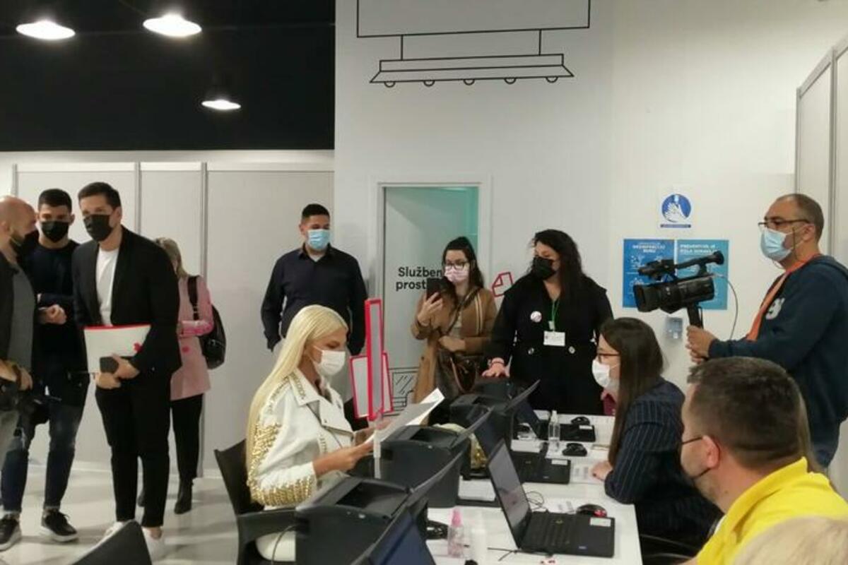 Karleuša je na vakcinaciju došla na vakcinaciju sva u belom, a pored nje se nalazio zamenik gradonačelnika grada Beograda Goran Vesić.