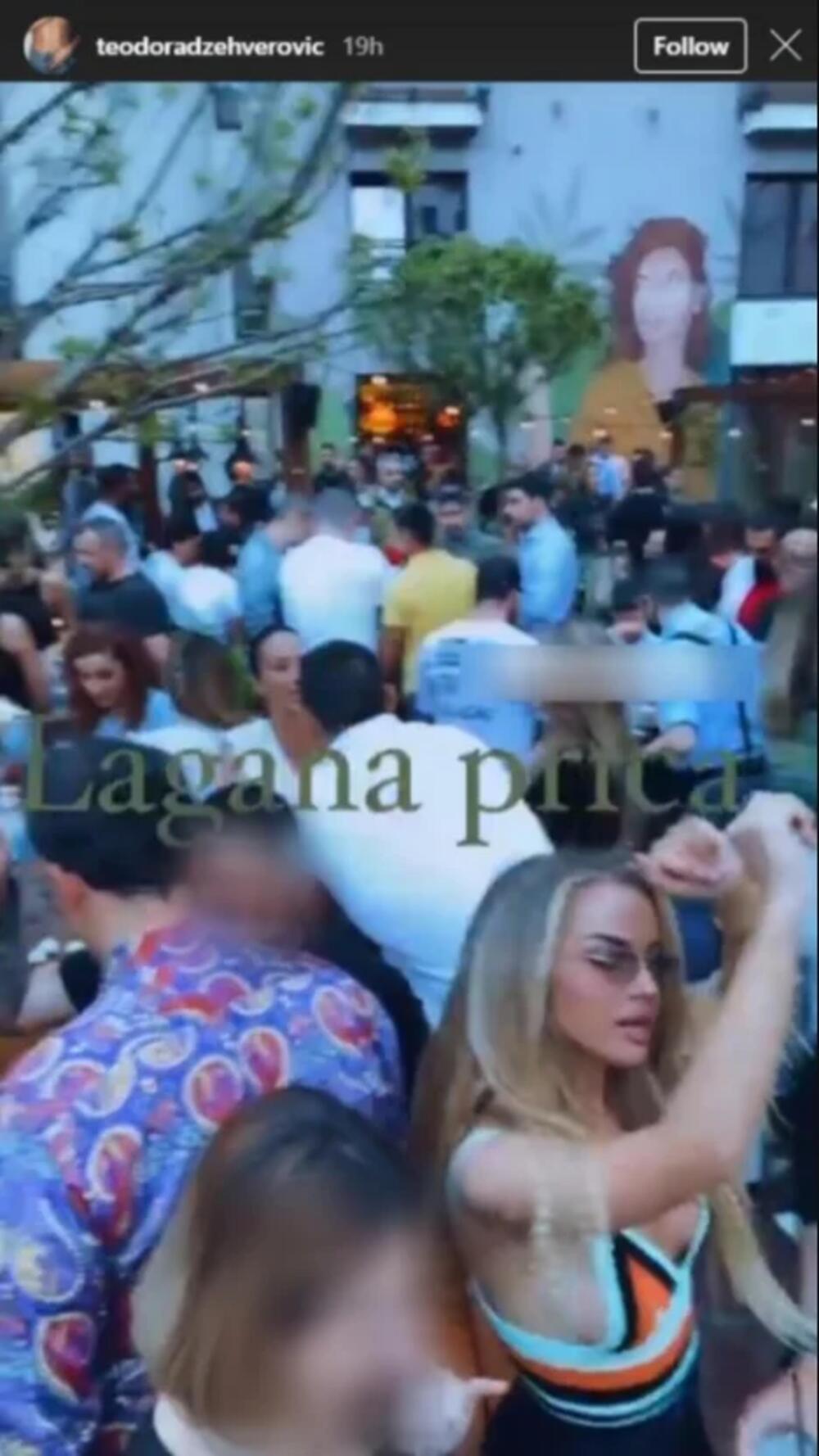 Teodora Džehverović i njen dečko Nino Čelebić zajedno su se provodili u Beogradu u jednom poznatom kafiću na žurki na otvorenom. Poznati par provodio se uz muziku i dobar ambijent, u kojem su se potpuno opustili. Njih dvoje su se tokom žurke grlili i ljubili i tako iskazivali ljubav jedno drugom.