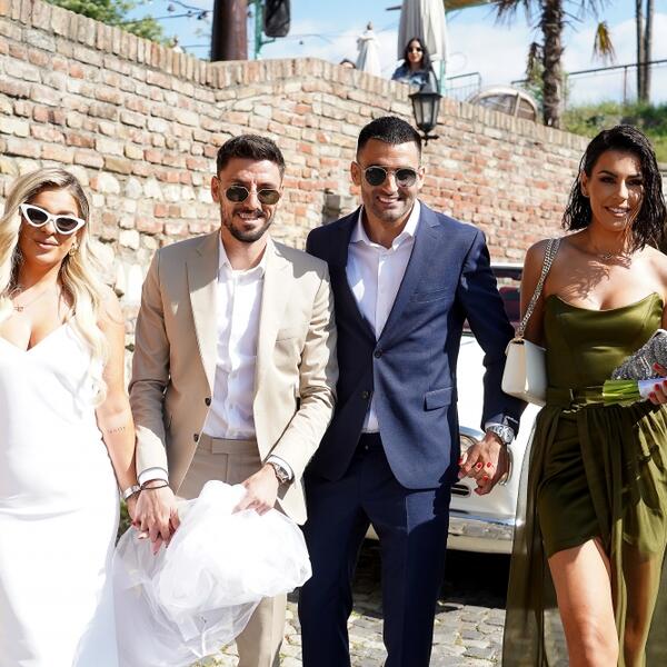 Fudbaler Aleksandar Mitrović oženio se danas dugogodišnjom devojkom Kristinom Janjić, a nakon crkvenog venčanja, mladenci su se sa kumovima i svatovima uputili ka restoranu Topčiderac.