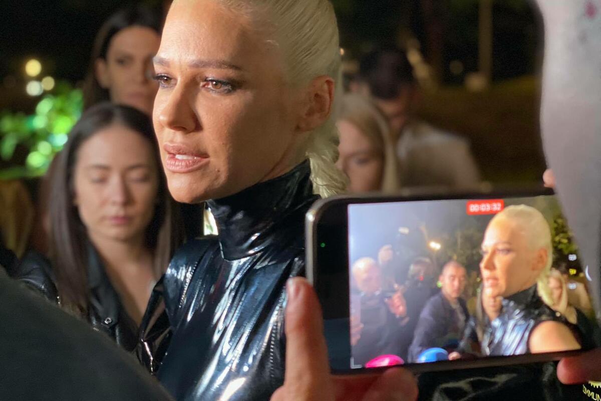 Nataša je vidno raspoložena pozirala okupljenim fotoreporterima, a za ovu priliku odabrala je crni-kožni, scenski kostim i duboke čizme.