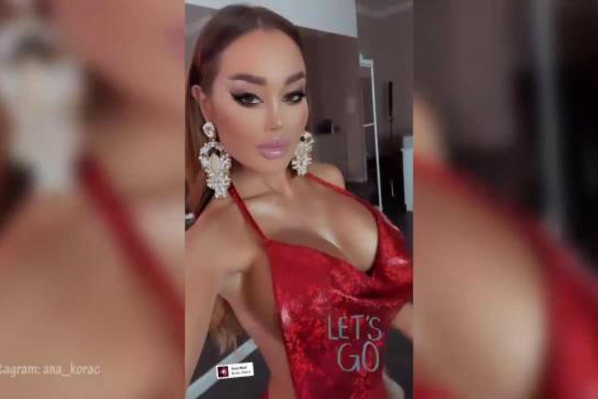 Koraćeva je obukla provokativnu crvenu haljinu sa golim leđima, a u prvom planu bio je njen dekolte i silikonske grudi. Slavljenica je svoj stajling upotpunila velikim minđušama.