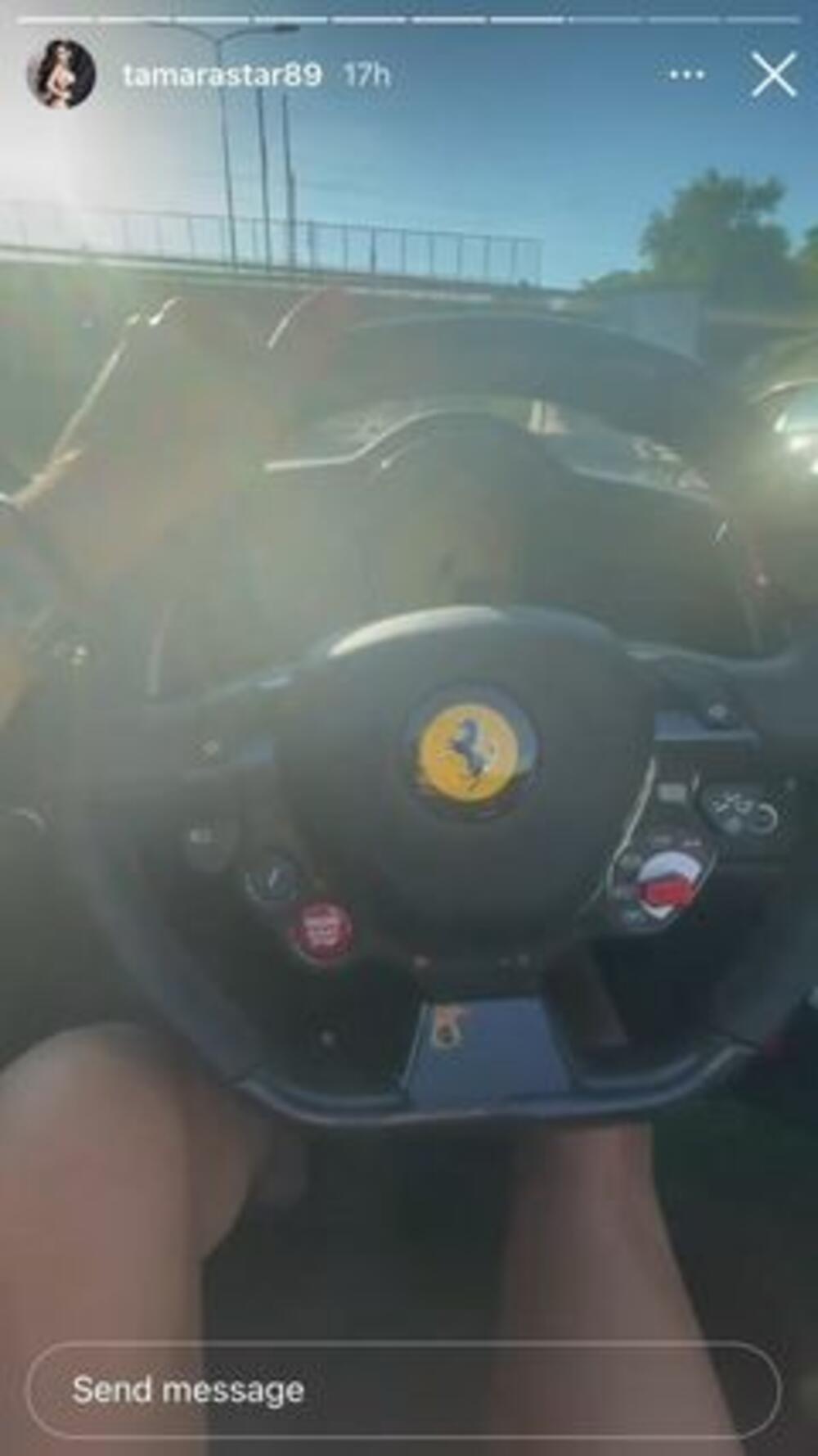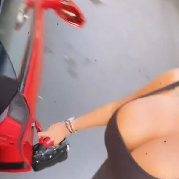Tamara se snimala dok stoji ispred crvenog "ferarija", i pokušavala je u isto vreme da u kadru drži i kola i ogromne, silikonske grudi.