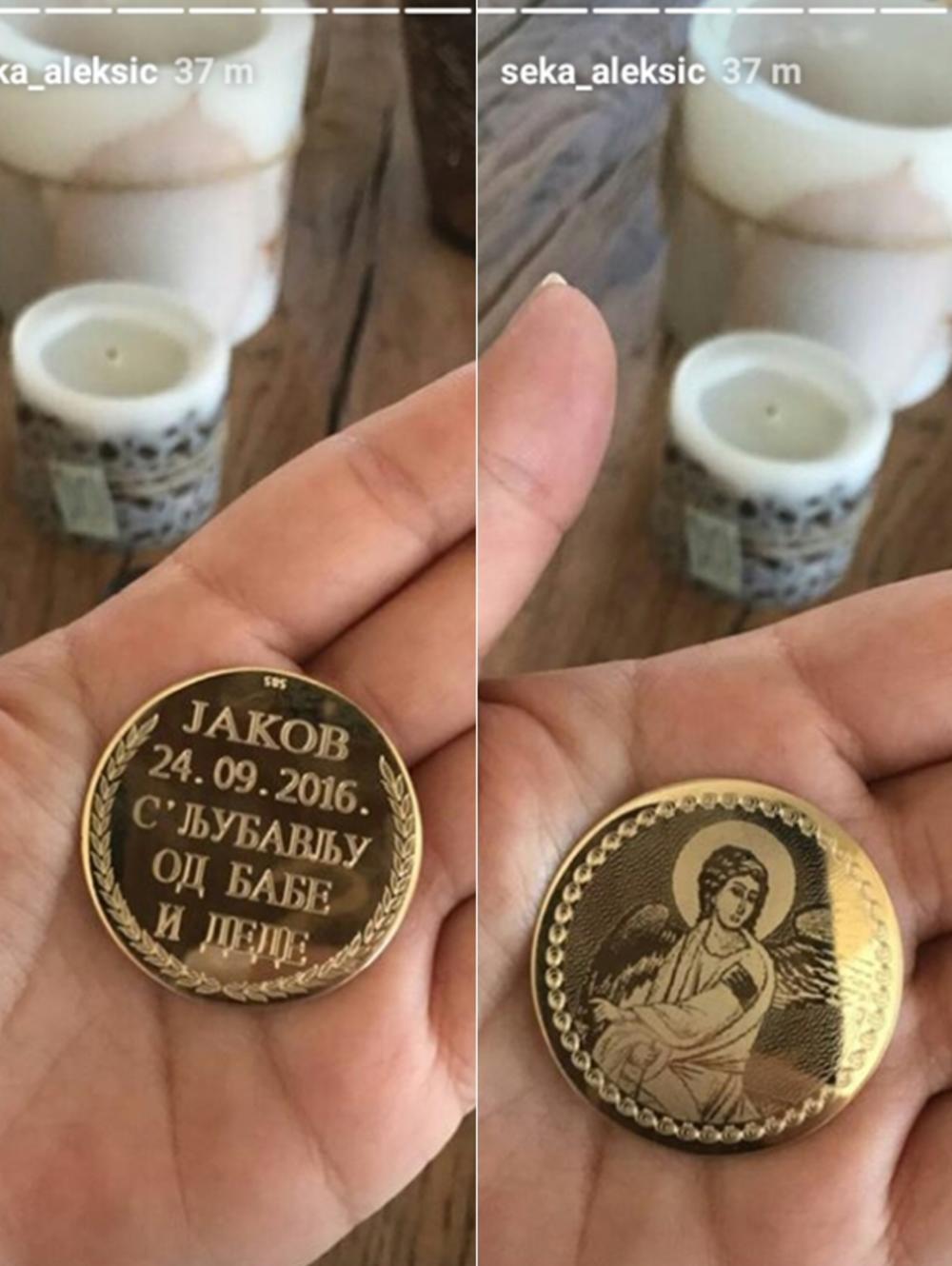 Pevačica se danas pohvalila originalnim poklonom koji je dečak dobio od babe i dede. U pitanju je zlatnik sa ugraviranim imenom sina, datumom rođenja i posvetom “S ljubavlju od babe i dede”.