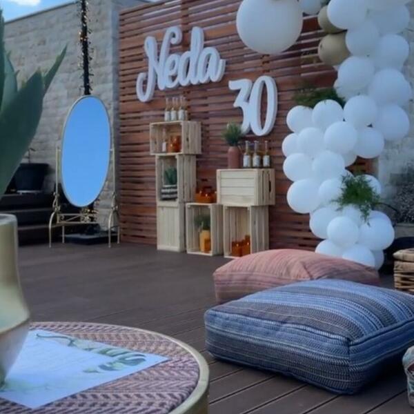 Osim prirode, ambijent je upotpunila i prelepa dekoracija - veliki jastuci, beli baloni, lampioni, kao i ogledalo nasred dvorišta. Veliku pažnju privukla su i slova košarkaševog nadimka na zidu - "Neda", pored kojeg je pisao i broj 30.