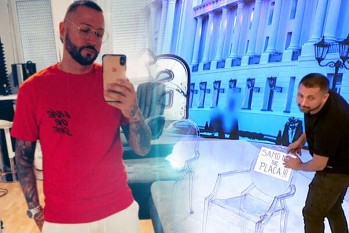 Đedović je doneo papir sa natpisom "Samo nek se plaća", što je rečenica koju je Mensur Ajdarpašić napisao na svom storiju kada se slikao sa Tarom Simov, a sve nakon što je reper platio Tarinu kaznu od 50.000 evra.