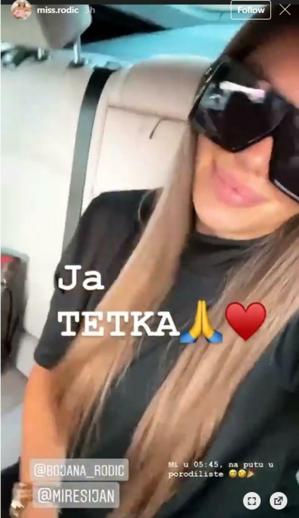Tetka Nataša Rodić, Bojanina sestra, nije krila sreću pa je na Instagramu pokazala kako je bilo kada je putovala sa sestrom i budućim zetom do porodilišta. Ona je uživala u muzici i radovala se dolasku malog Zorana na svet.