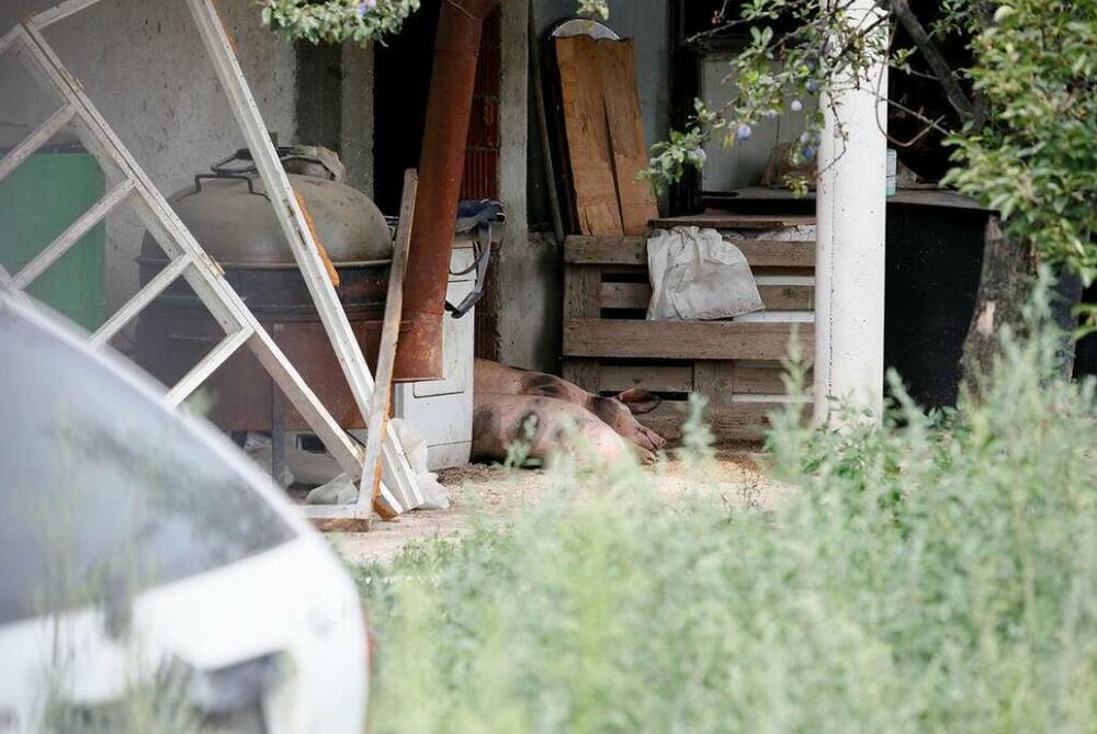 U dvorištu se nalaze koze, kao i dve svinje koje su spavale na terasi ispred kuće.