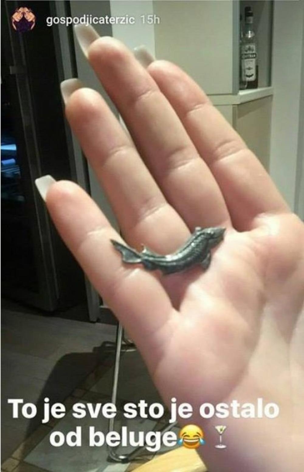 "To je sve što je ostalo od beluge", napisala je Maša u opisu fotke koju je okačila na svoj Instagram i stavila smajli i čašu sa kojom nazdravlja.