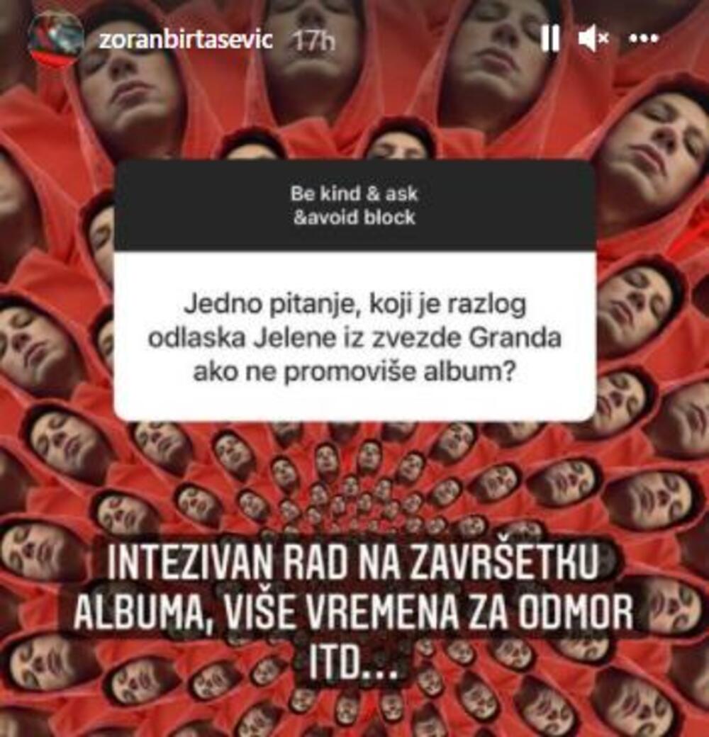 PR menadžer i prijatelj popularne pevačice odgovarao je na pitanja pratilaca na društvenoj mreži Instagram i tom prilikom otkrio nove detalje o Jeleninim novim pesmama, ali i o odlasku iz "Granda".