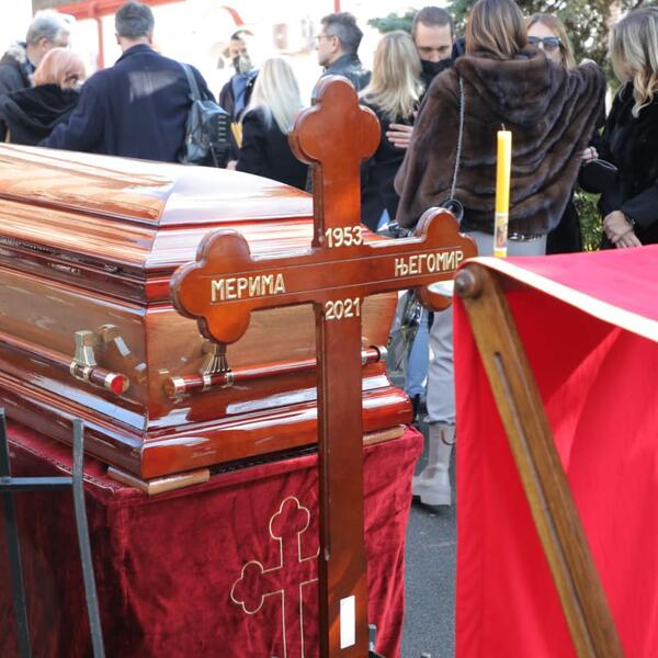 Kovčeg je postavljen ispred crkve Sv. Nikole na Novom groblju gde će se održati opelo, a najbliži su se okupili kako bi je ispratili na većni počinak. Ćerka Ljubica u jednom trenutku snažno je zagrlila dečaka koji joj je prišao i zaplakala.