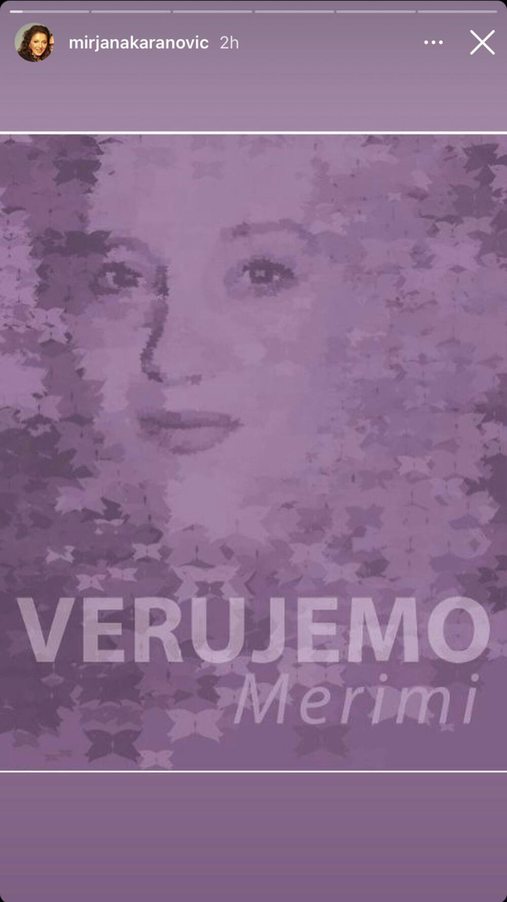 Karanović je putem Instagram storija objavila njihove pojedinačne fotografije sa natpisima „Verujemo Mileni“, „Verujemo Ivi“, „Verujemo Danijeli“, „Verujemo Mariji“, „Verujemo Merimi“.