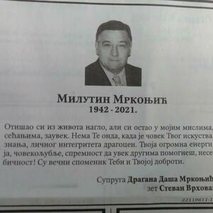 Da podsetimo, Milutin Mrkonjić jedan je od osnivača SPS-a, a u svojoj dugoj poslovnoj i političkoj karijeri bio je na više značajnih funkcija, dugogodišnji poslanik, ministar u dva mandata i savetnik.