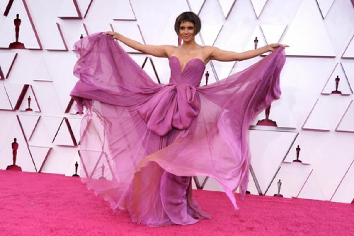 Beri je pozirala u velelepnoj zlatnoj haljini sa velikim dekolteom koja otkriva i njene butine