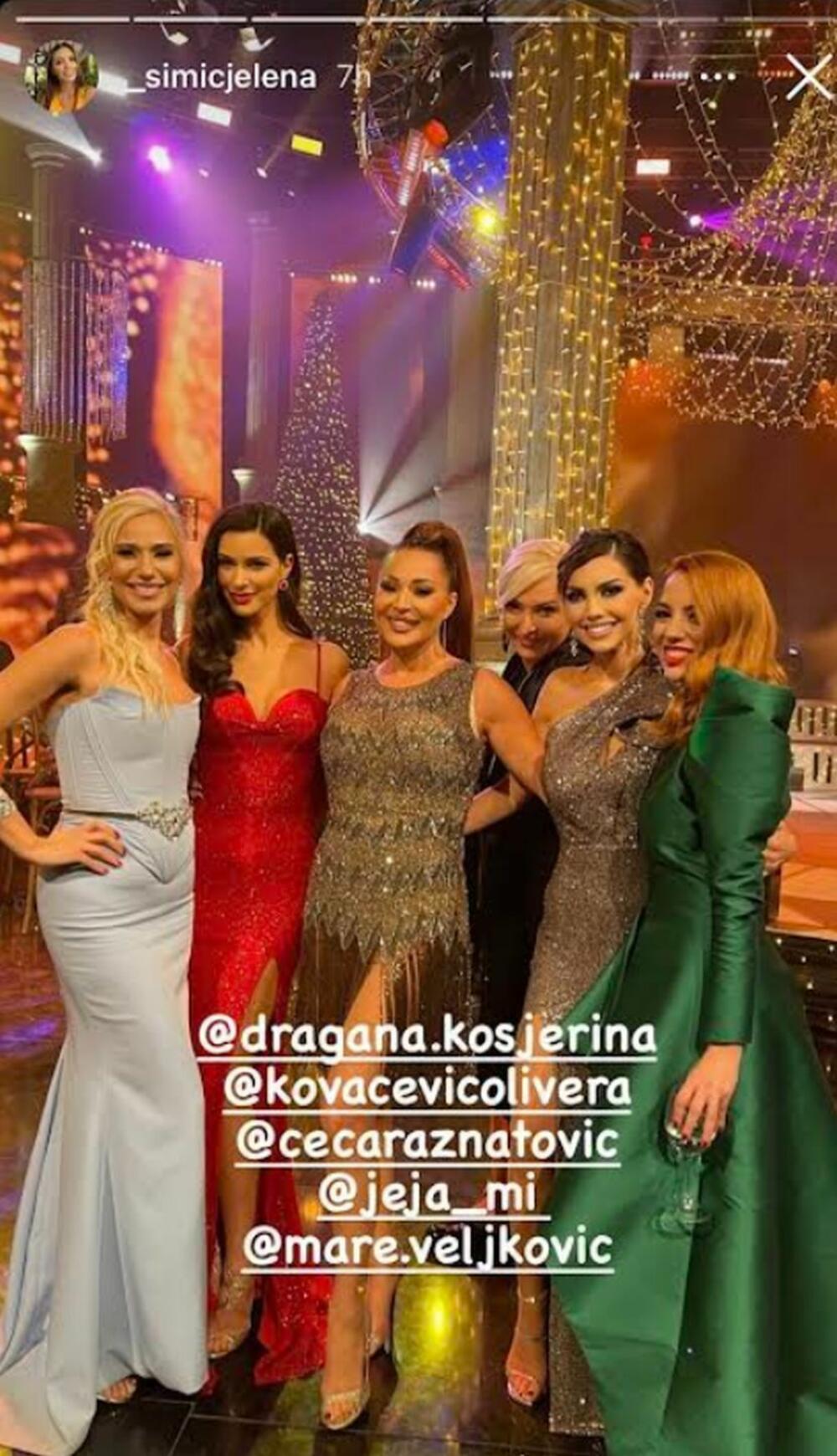 One su nasmejane pozirale, a na pojedinim snimcima, dok je Ceca pevala, moglo se videti i da se sve nabrojane lepotice sjajno zabavljaju uz njene pesme.