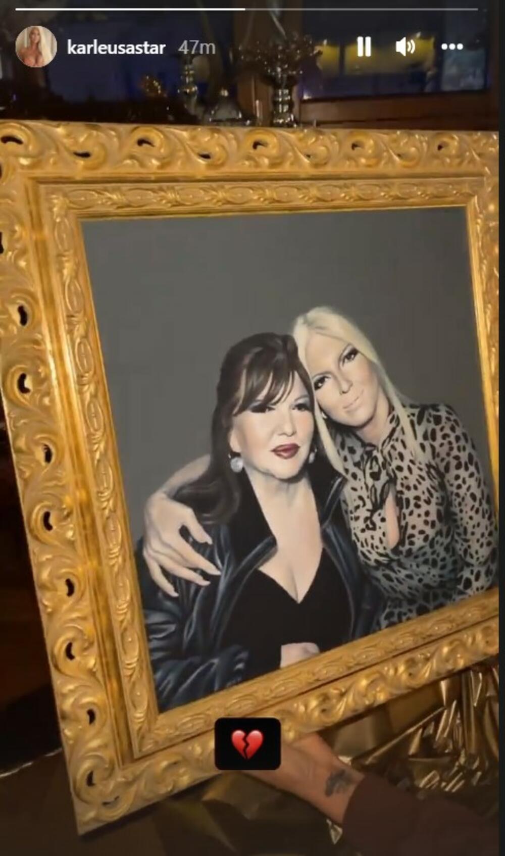 Jelena Karleuša je rastužila svoje pratioce na društvenim mrežama kada je objavila juče stori na Instagramu gde je pokazala da je dobila ogromnu sliku na kojoj se nalaze ona i njena pokojna majka Divna.