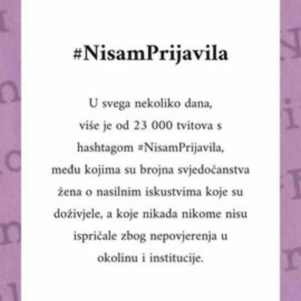 Grupa će služiti za deljenje iskustava, ispovesti, problema, saveta i apela. U jednom momentu postaće zaključana i biće mesto okupljanja svih borkinja protiv nasilja." Link do grupe: #NisamPrijavila.