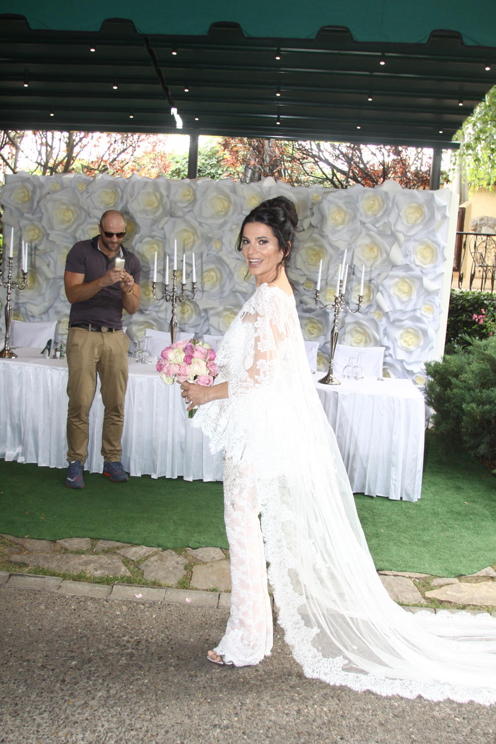 Narednog dana, u nedelju, 11. septembra, supružnici su obavili i građansko venčanje u bašti prestižnog restorana Franš. Aleksandra je došla još u prepodnevnim časovima i uz pomoć saradnika predvođenih dizajnerom i dugogodišnjim prijateljem Darkom Kostićem počela da se sprema za izlazak pred matičara...