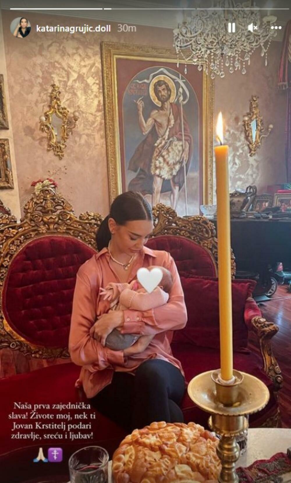 Grujićeva koja uživa u ljubavi sa fudbalerom Markom Gobeljićem danas slavi slavu Sveti Jovan, pa je podelila trenutke iz svog doma. Ona je objavila fotografiju sveštenika, sveća, kolača i trpeze, a potom i svoju sa Katjom.