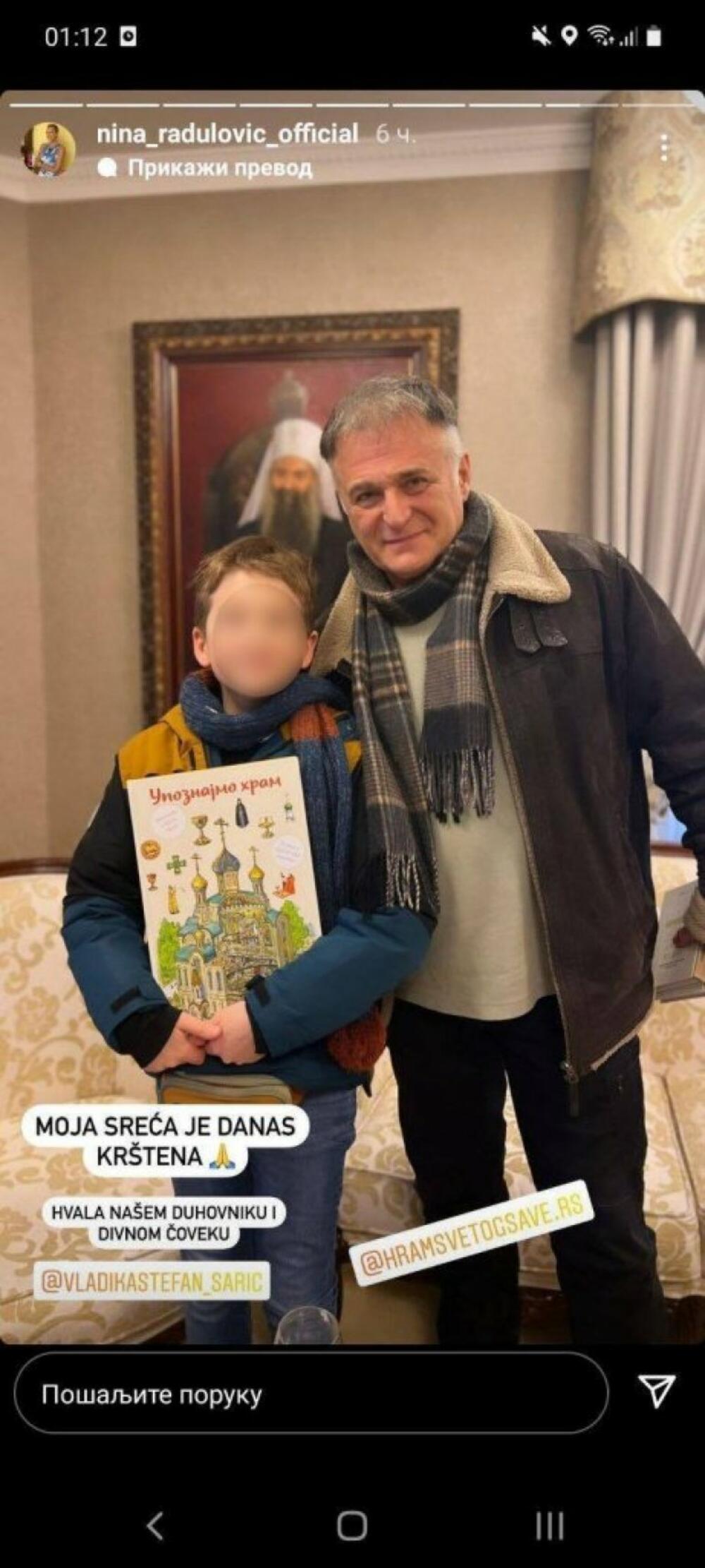 - Moja sreća je danas krštena. Hvala našem duhovniku i divnom čoveku Stefanu Sariću - napisala je Nina uz fotografiju malog Lava i Branislava.