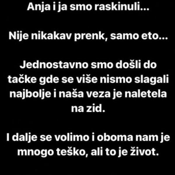- Godina mi se završila užasno loše i teško, počela je još gore i teže. Objaviću sutra zašto, da vas ne crnim previše sad - napisao je Ilić na storiju i "podgrejao" nagađanja o raskidu, što su kasnije i potvrdili.