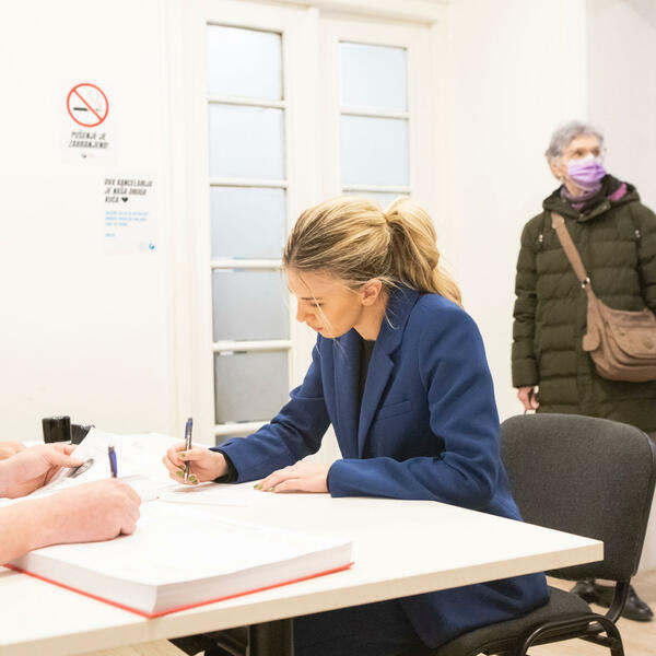 S obzirom na to da se pomenuta nalazi na listi kandidata za odbornike ispred liste "Ujedinjeni za pobedu Beograda - Vladeta Janković", ona je danas prisustvovala predavanju potpisa za kandidaturu.