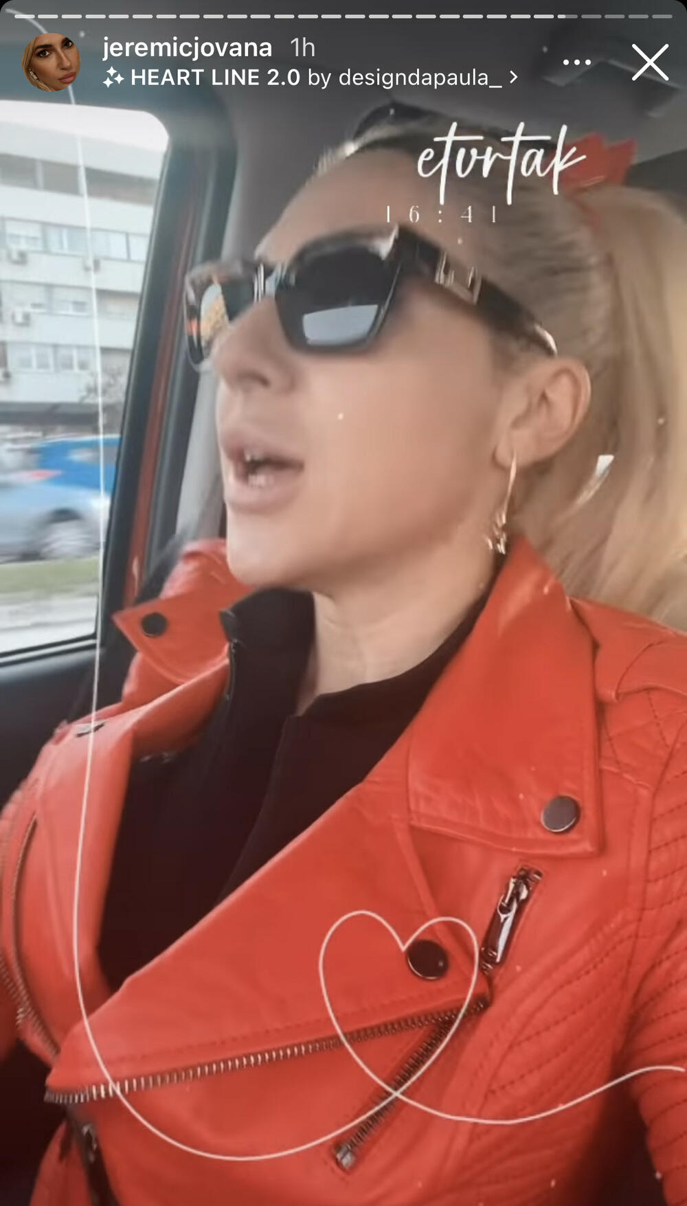 Naime, ona je u toku vožnje snimala sebe kako peva pesmu Cece i Ace Lukasa "Ne zanosim se ja", a za deo "svi bi večeras ovde hteli tvoju bivšu" je rekla da je njen.