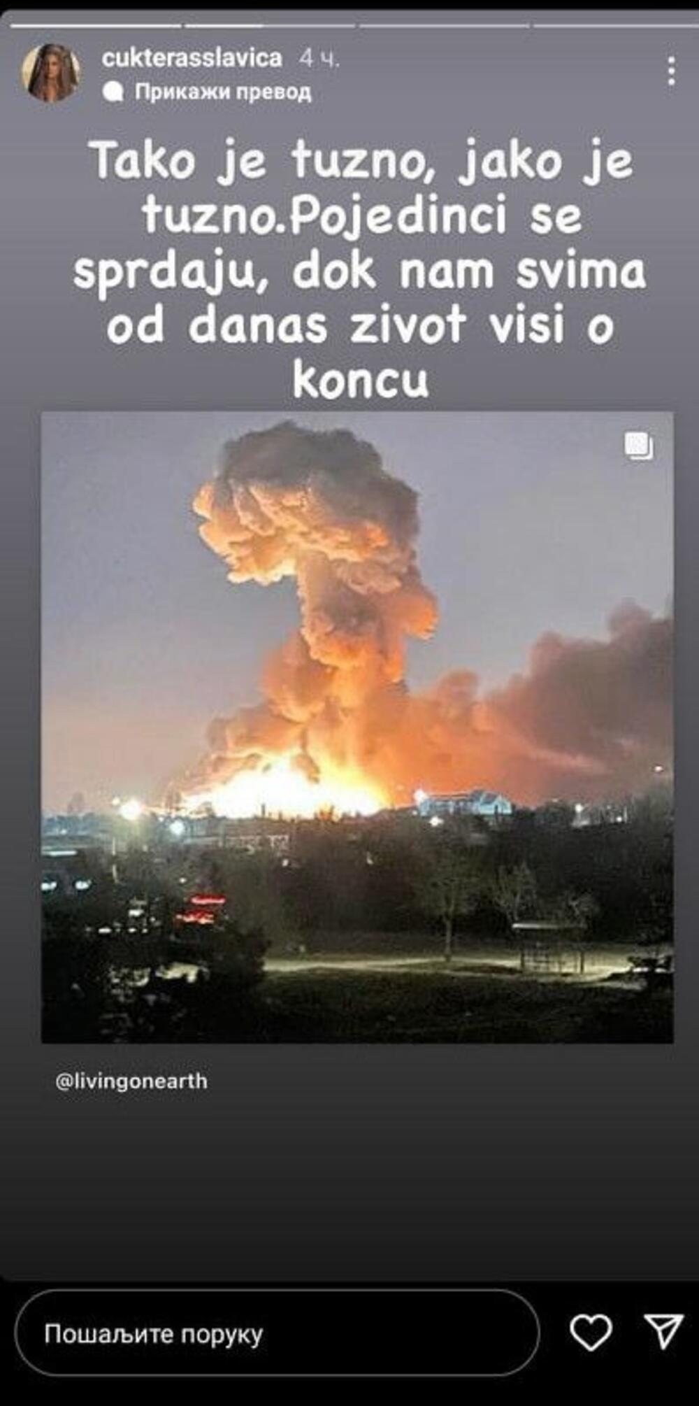 - Tako je tužno, jako je tužno. Pojedinci se sprdaju, dok nam svima od danas život visi o koncu - napisala je Slavica, a zatim dodala: