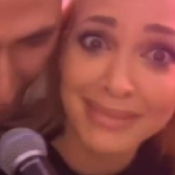 Ona je vratila mikrofon u svoje ruke a kako bi ga zaustavila u nameri da nastavi sa pevanjem. Ona je napravila smešnu grimasu na licu pa mu se obratila: