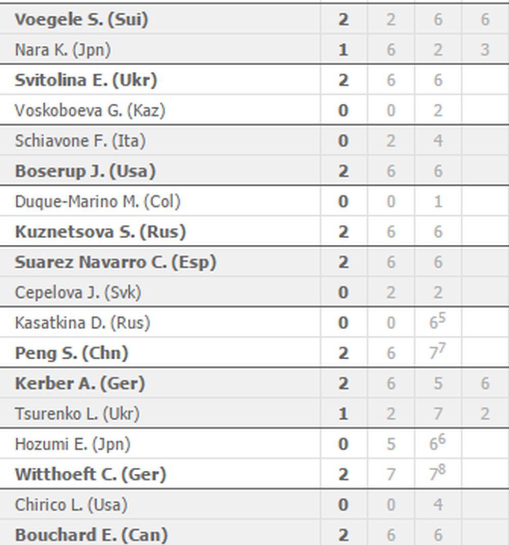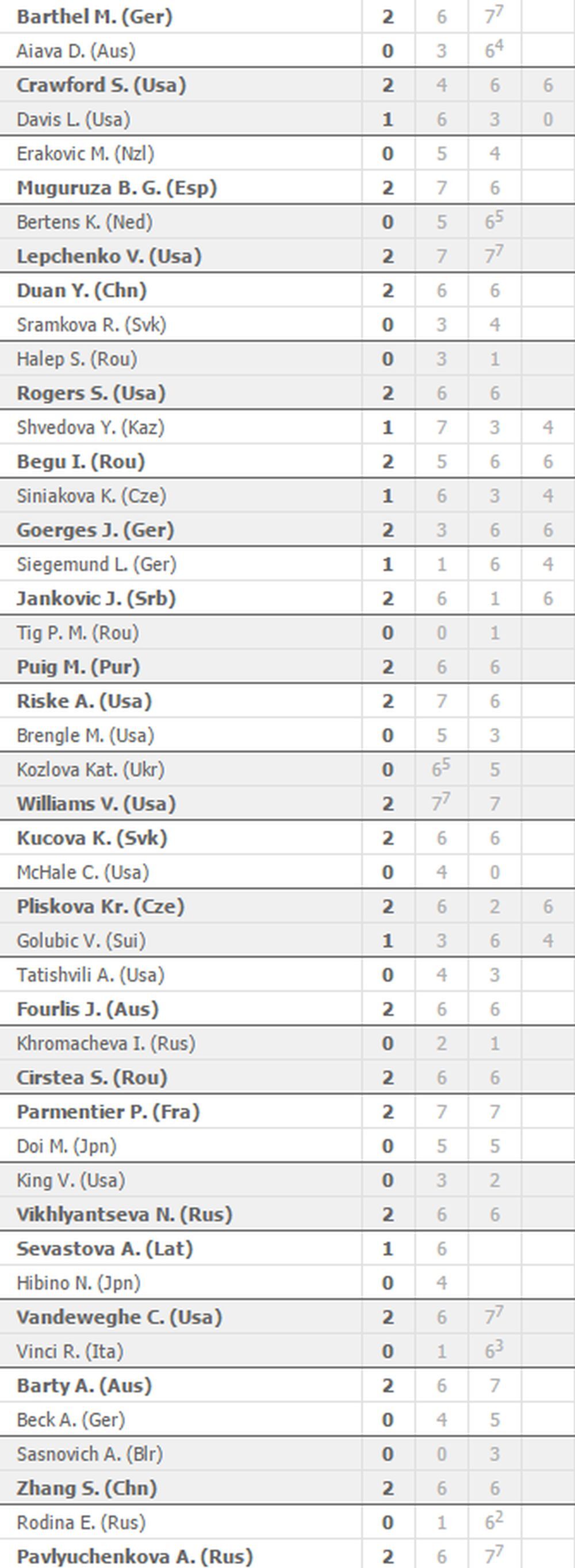 Od onih koje su ispale trebalo bi istaći Robertu Vinči koja je kao 19 na svetu poražena od 35. na WTA listi Koko Vandevege 6:1, 7:6.