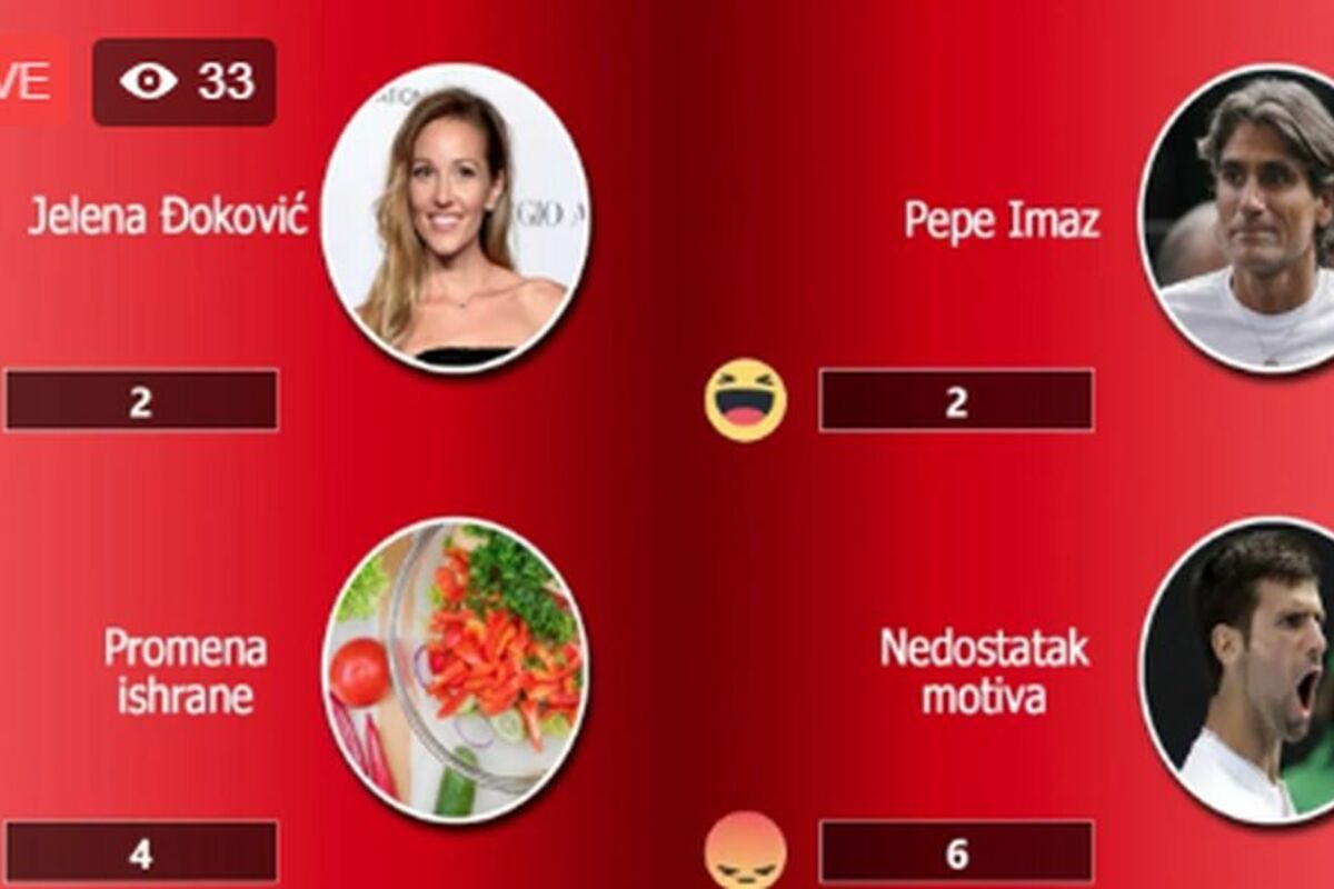 Ova opcija 39 glasova, Pepe Imaz i i promena ishrane imaju 17 glasova, a Jelena Đoković 16 glasova.