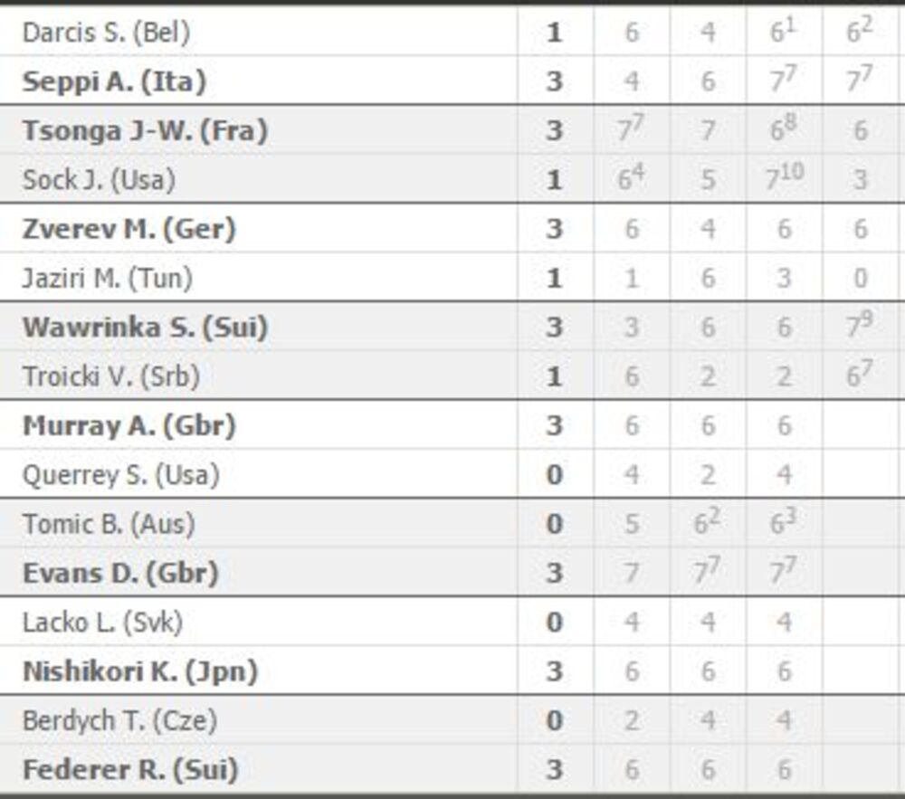 Kod muškaraca sigurni su bili Endi Mari, Rodžer Federer, Sten Vavrinka, Kei Nišikori...dok su kod dama dobro svoj posao odradile Venus Vilijams, Anđelik Kerber, Garbine Muguruza...