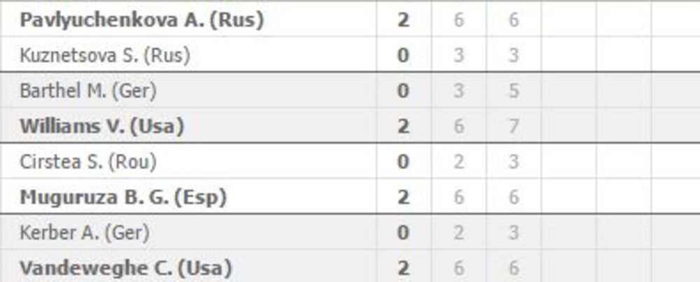 Muguruza je lagano savladala Kristeu sa 6:2, 6:3, a Anđelika Kerber je priredila neprijatno iznenađenje.
